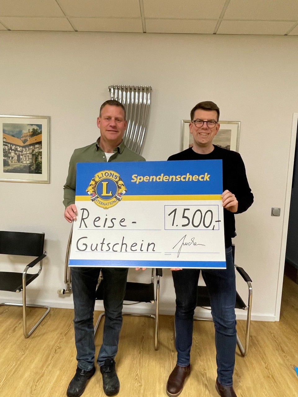 Präsident Mathias Juchem überreichte den Reisegutschein im Wert von 1.500 Euro an Jörg Richter aus Herlinghausen. Der Lions-Adventskalender gehört in Warburg längst zur Vorweihnachtszeit – und verbindetGewinnchancen mit einem guten Zweck. „Die Aktion lebt von der großen Unterstützung aus der Region – von Sponsorinnen und Sponsoren ebenso wie von den Menschen, die den Kalender kaufen oder verschenken“, betonte Juchem bei der Übergabe. Das Prinzip sei bewusst einfach: Kalender kaufen, mitfiebern, gewinnen – und zugleich soziale sowie kulturelle Projekte fördern. Seit Beginn der Adventskalenderaktion sind auf diese Weise über 200.000 Euro für gemeinnützige Zwecke zusammengekommen. Auch in diesem Jahr dürfte der Reinerlös wieder bei ca. 20.000 Euro liegen.